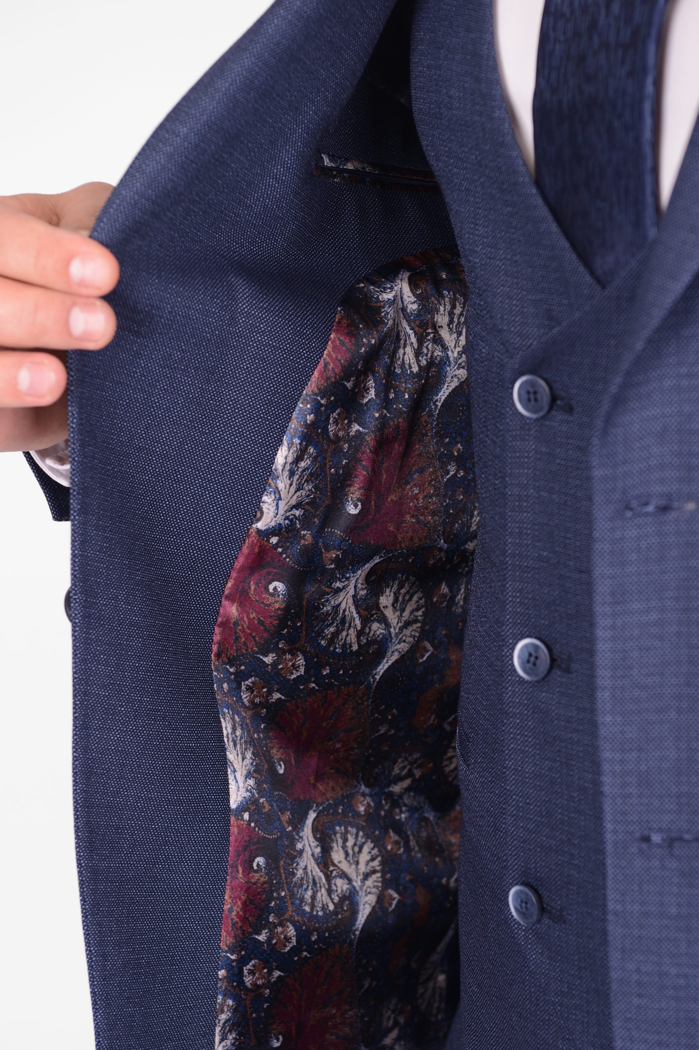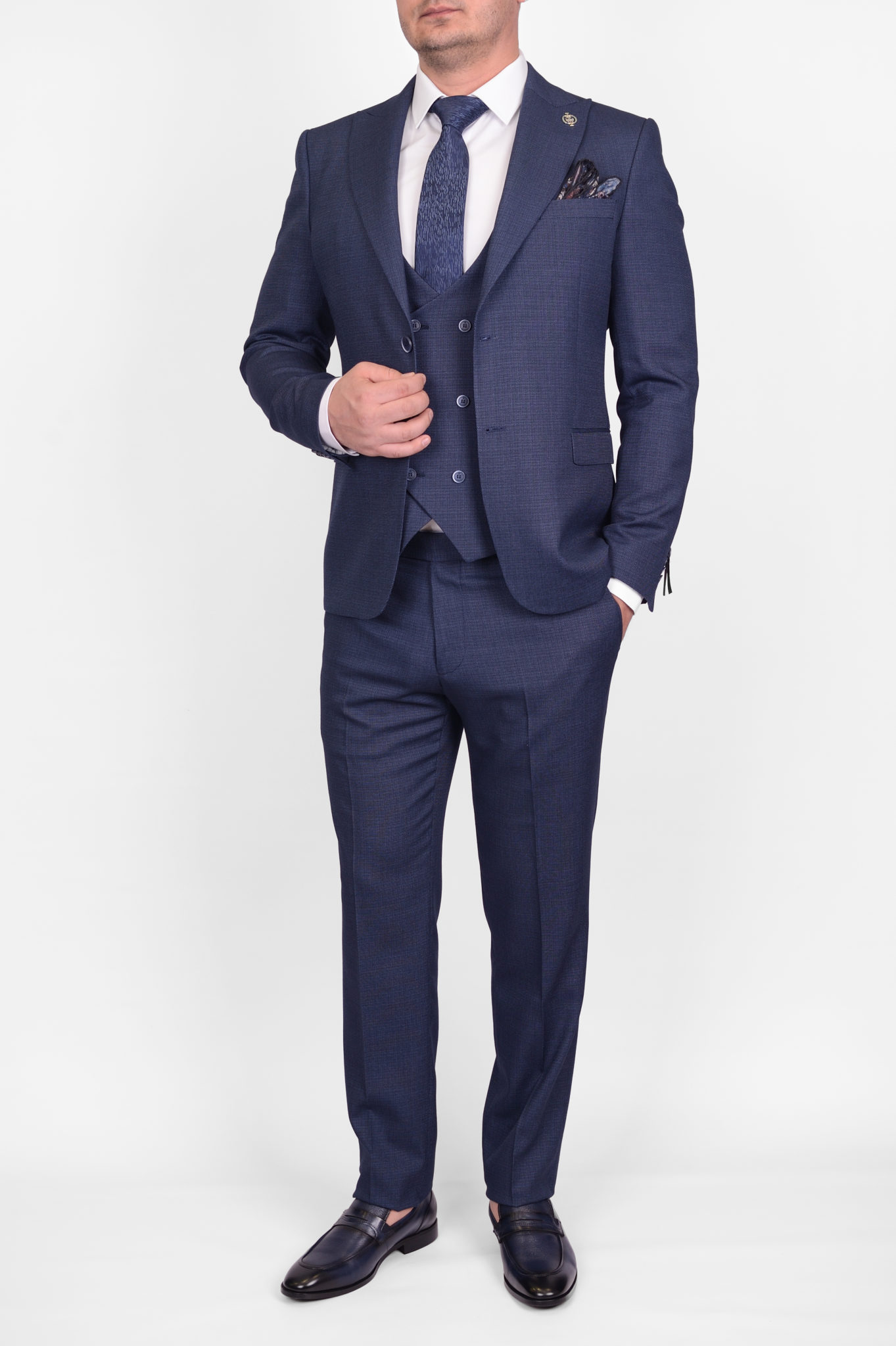 Костюм-тройка синего цвета, облегченная модель