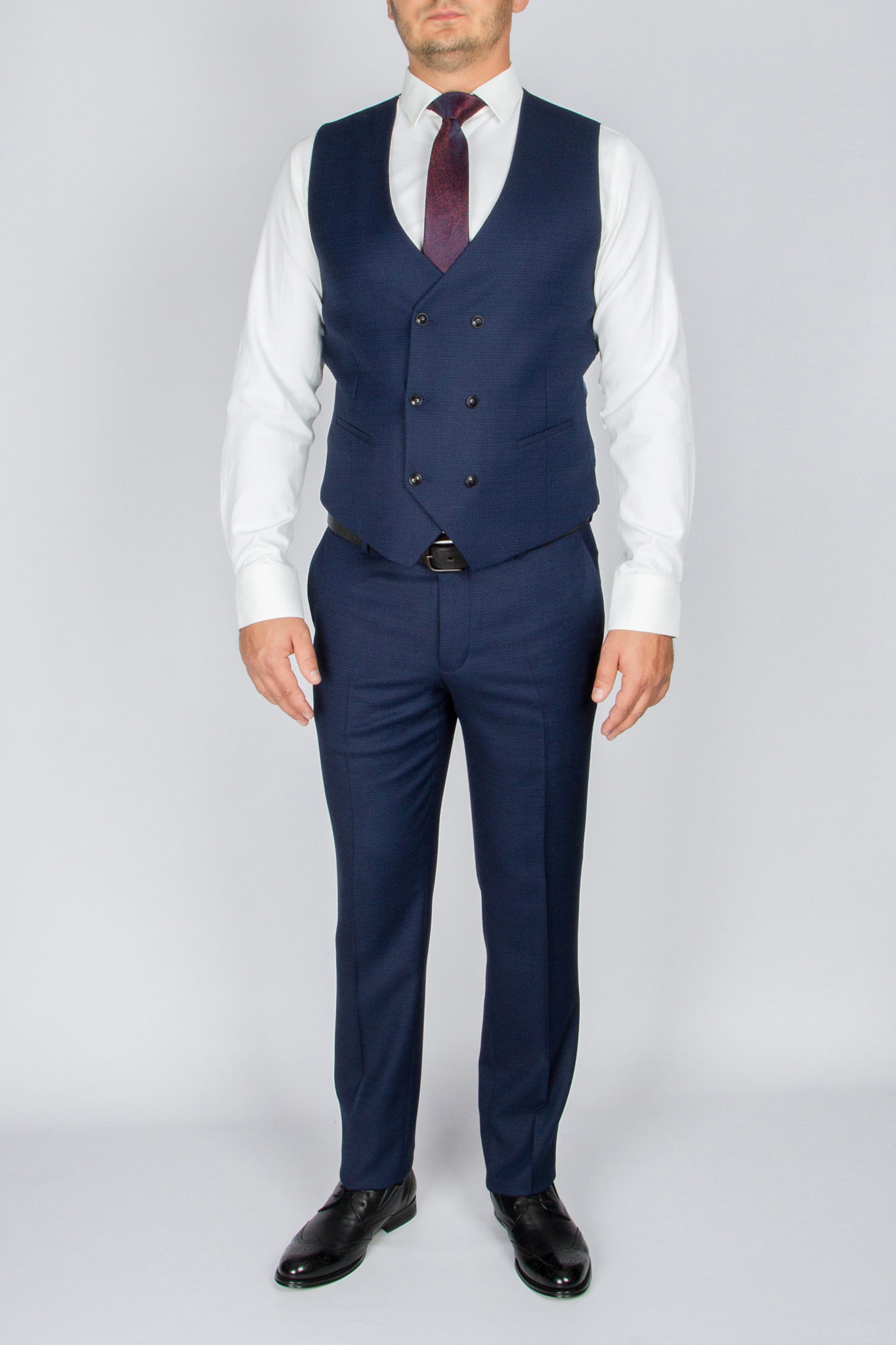 Костюм отшит в современной приталенной модели slim fit. Пиджак имеет застежку на две пуговицы, заостренный лацкан воротника, значек в петлице. Жилет двубортный с регулятором обьема. Брюки прямые без защипов, отшиты в классическом стиле приуженого кроя. По вашей просьбе мы подгоним длину брюк под вашу ростовку, заузим по ширине. Костюм отшит из смесовой ткани высокого качества в составе 80% шерсти и 15% вискозы и лайкра 5%, что позволяет долго сохранять презентабельный внешний вид и форму, ткань устойчива к заминанию.