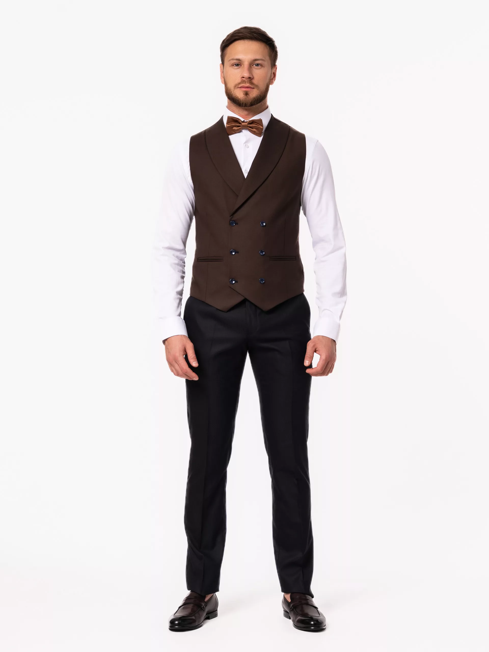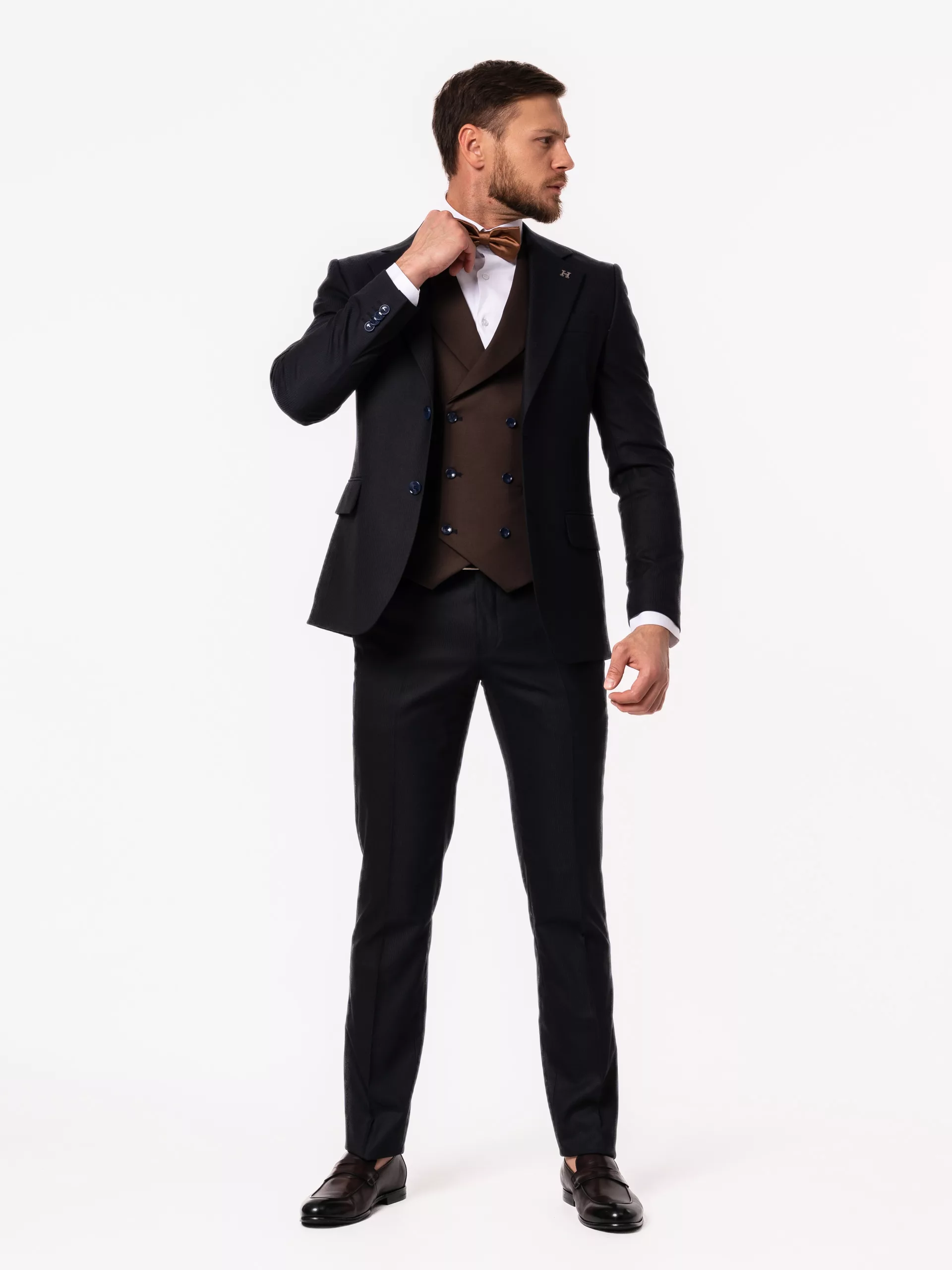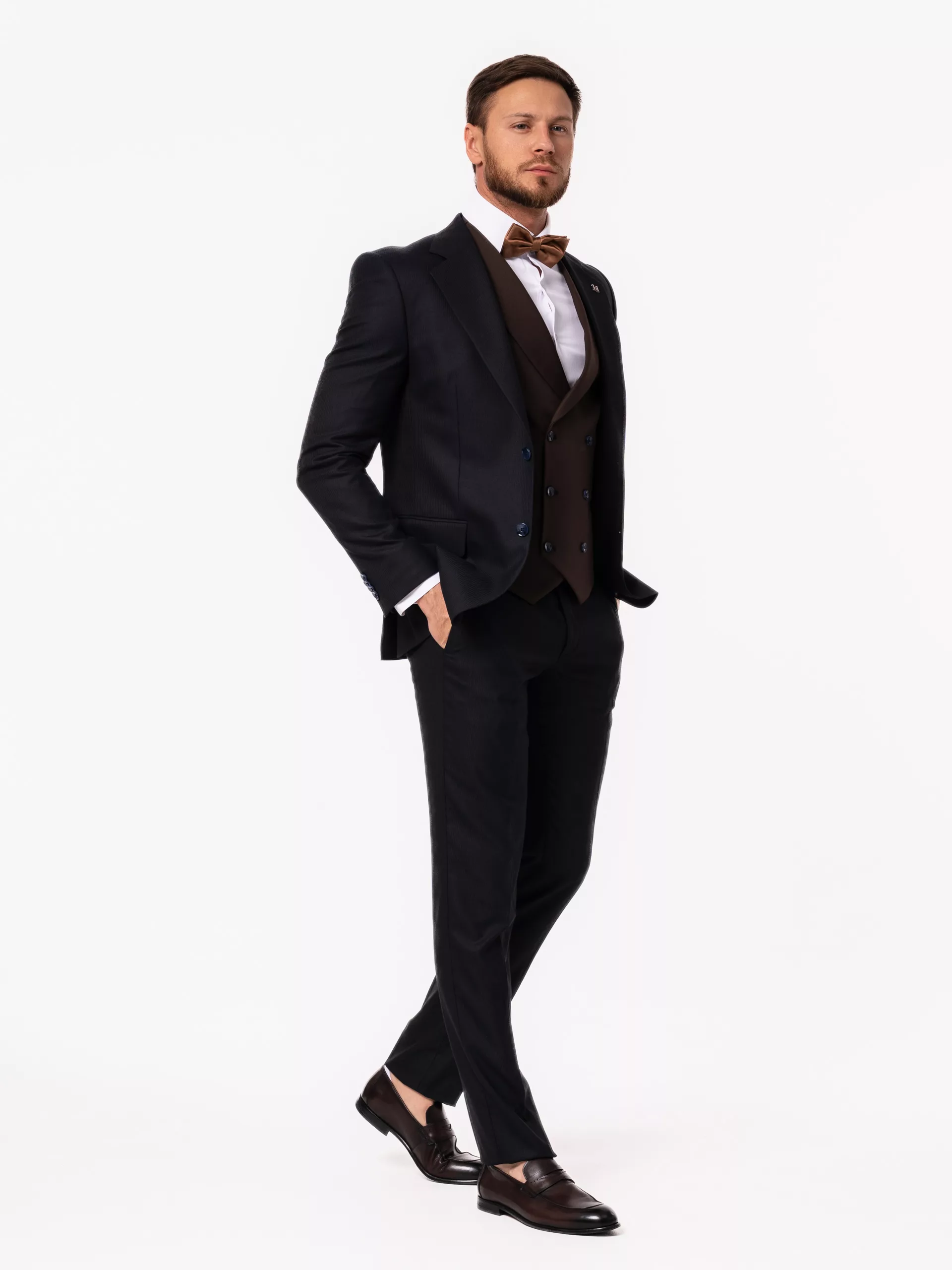 Костюм-тройка синего цвета с коричневым жилетом