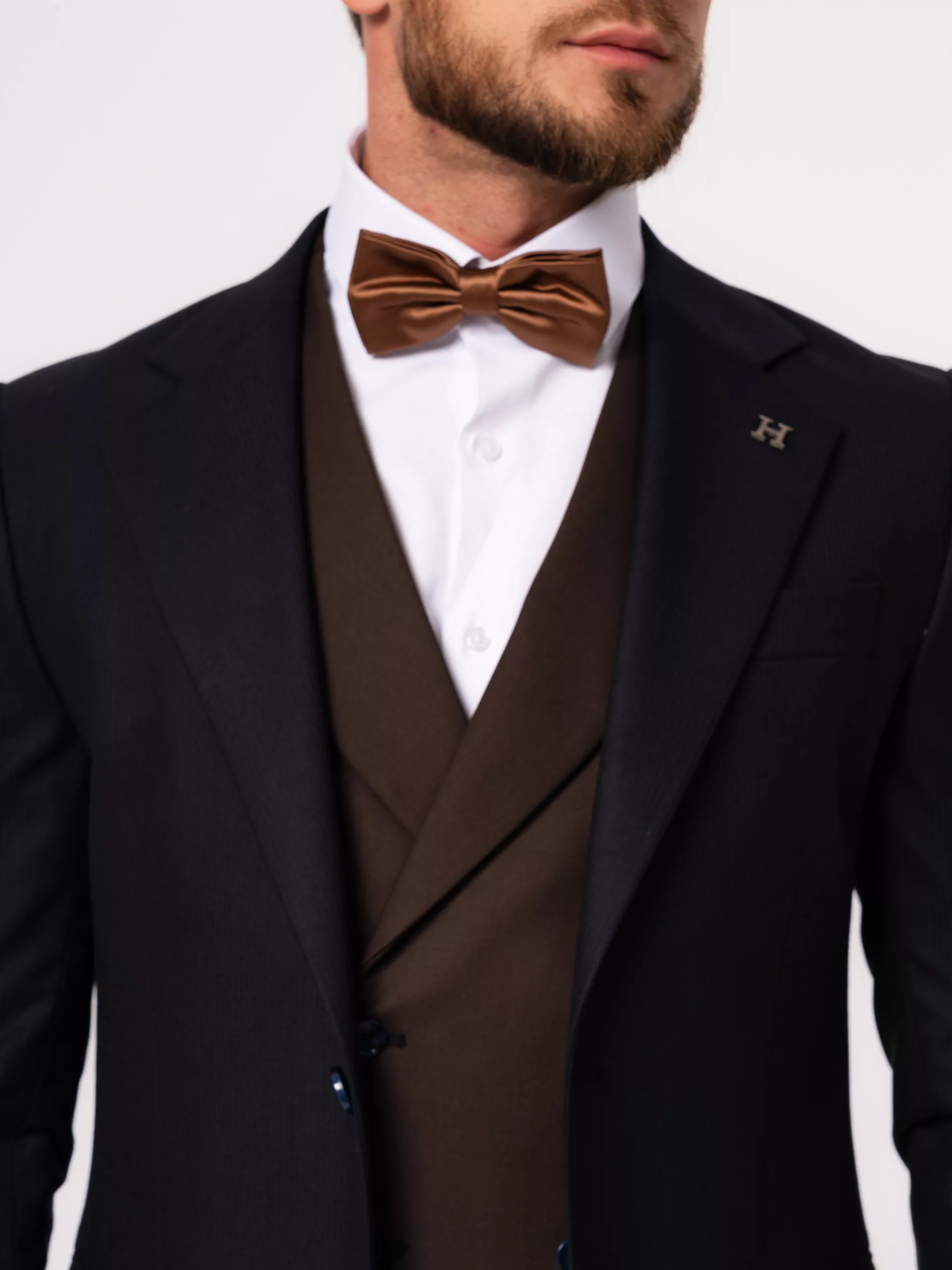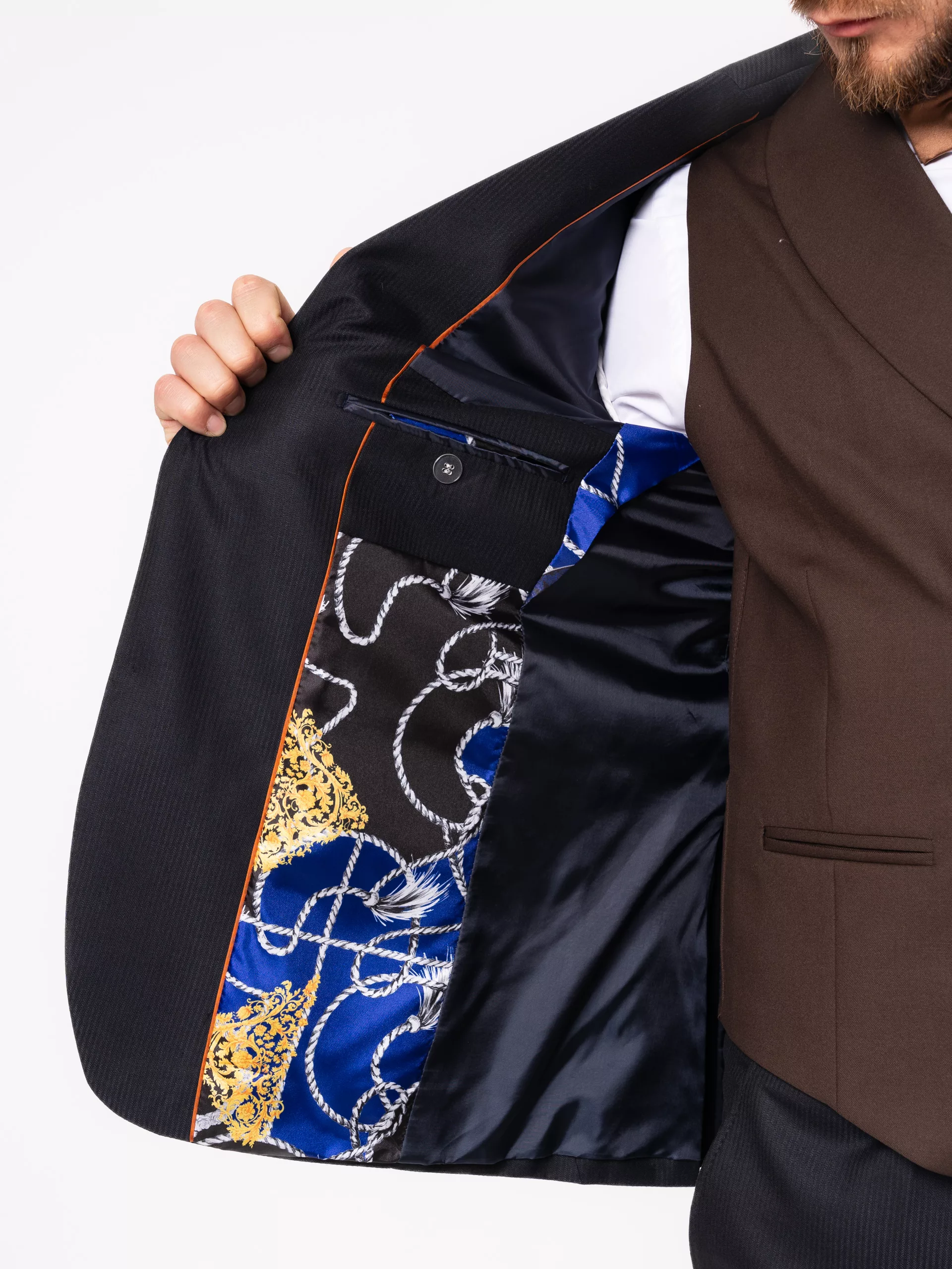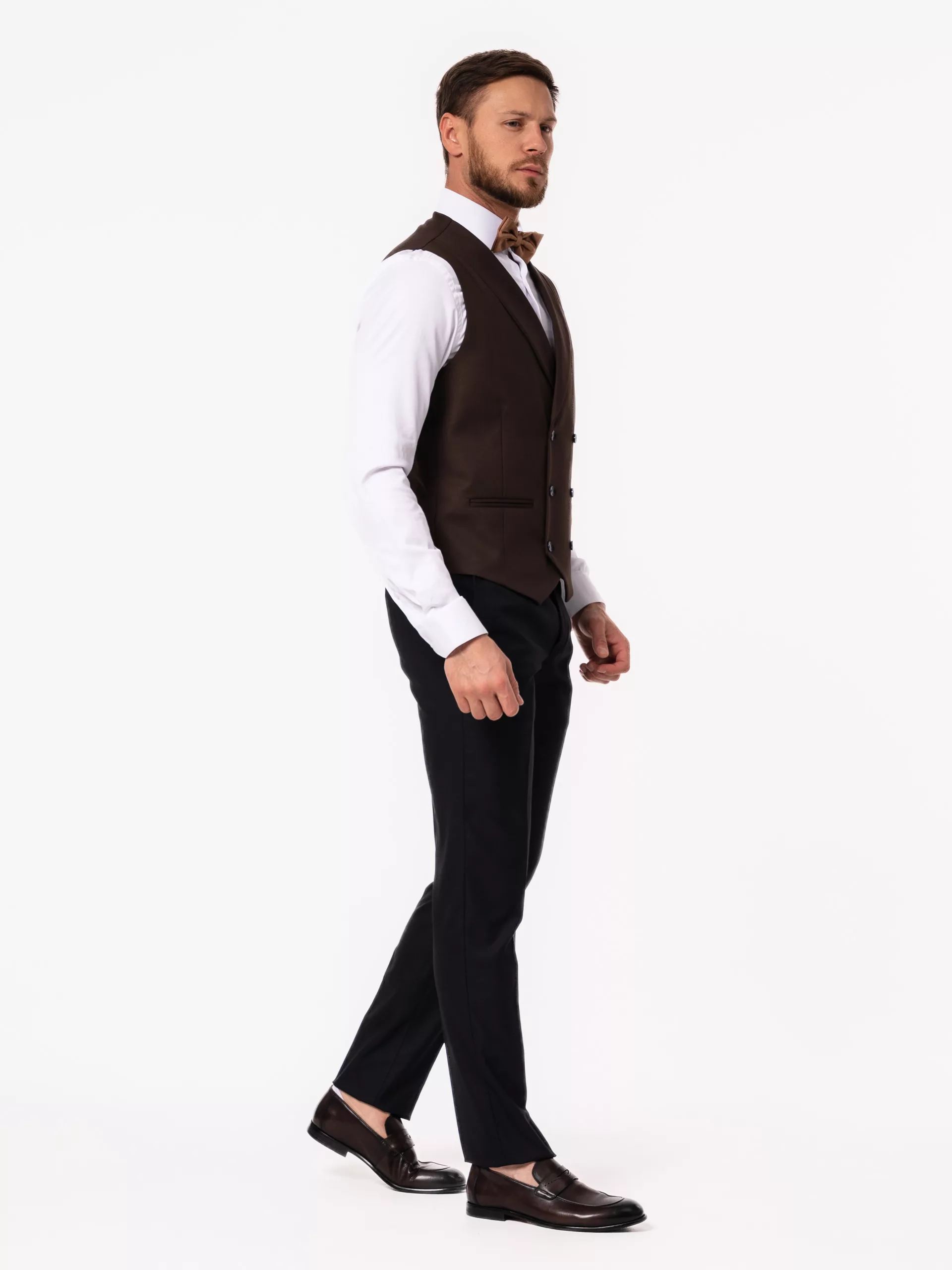 Костюм-тройка синего цвета с коричневым жилетом