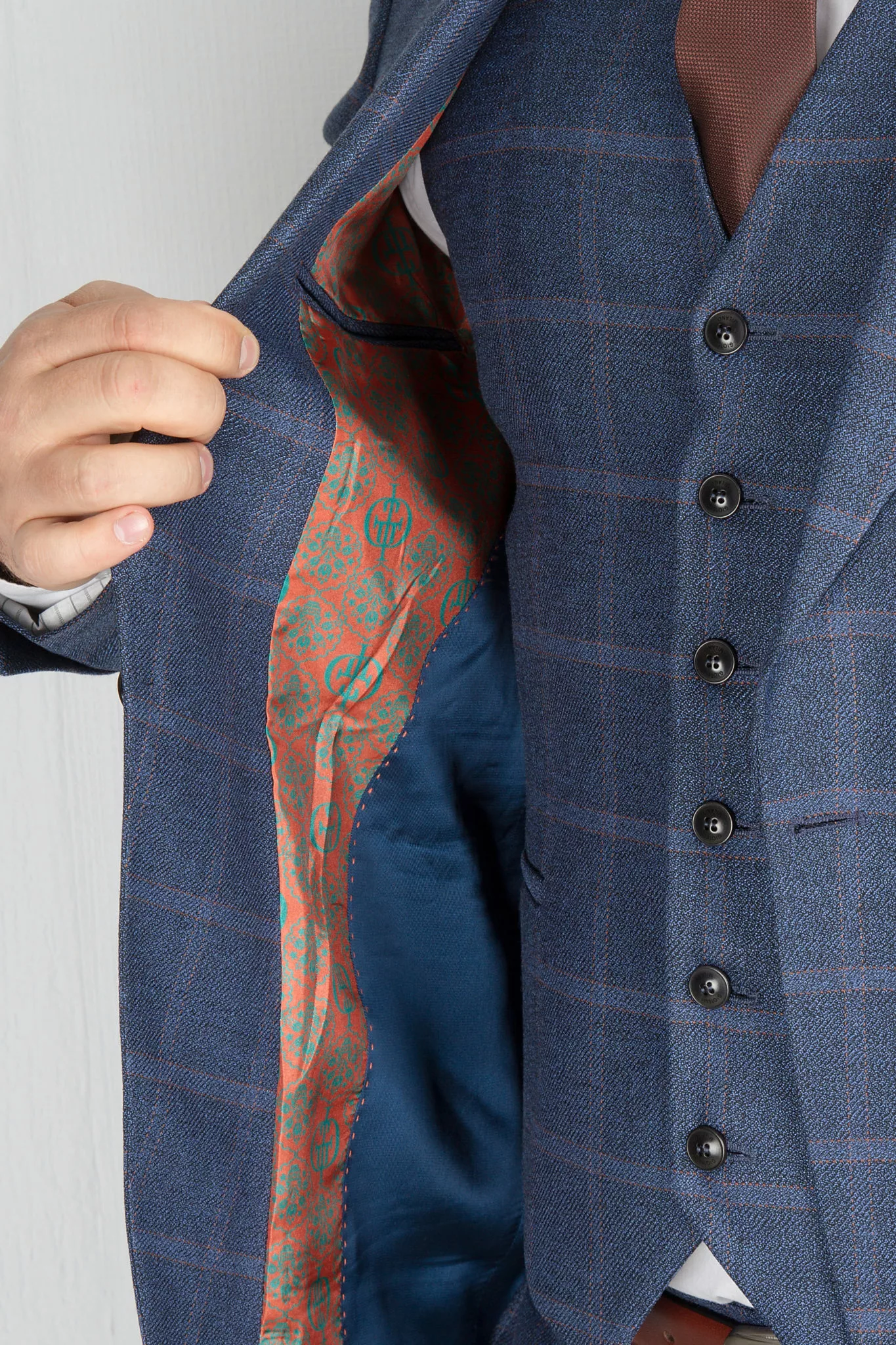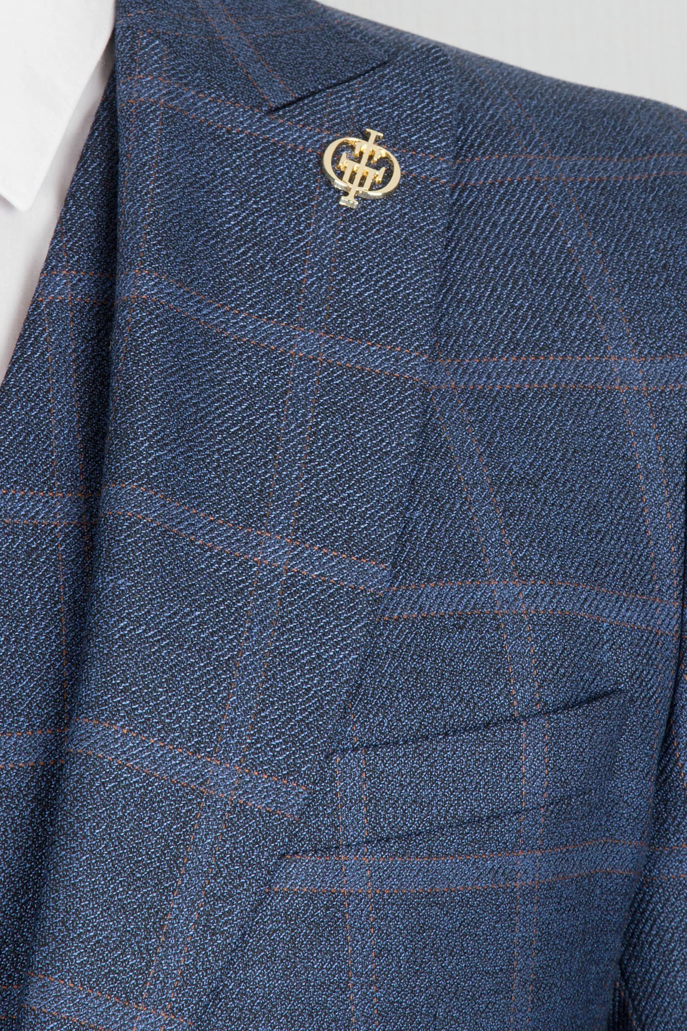 Костюм-тройка синего цвета в клетку