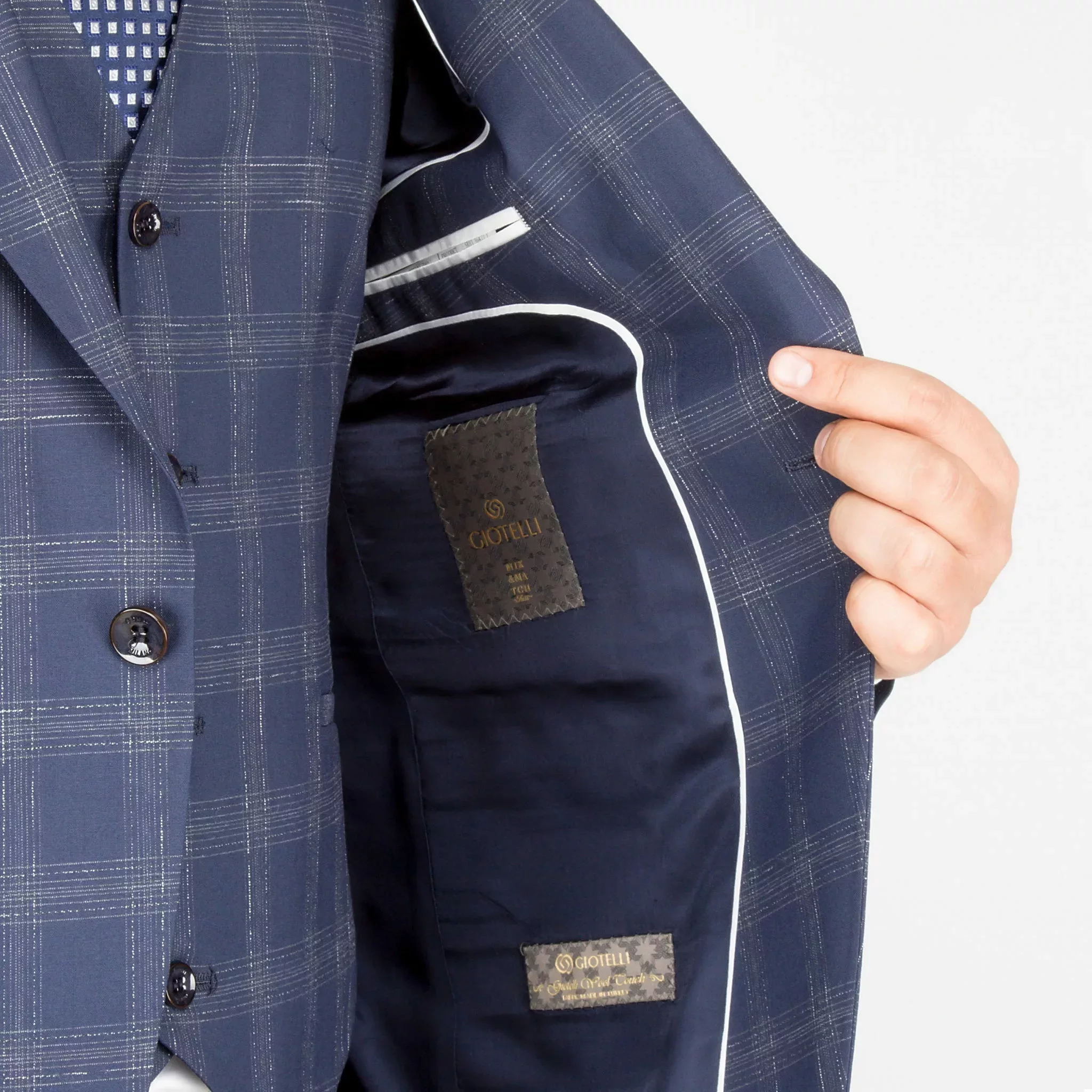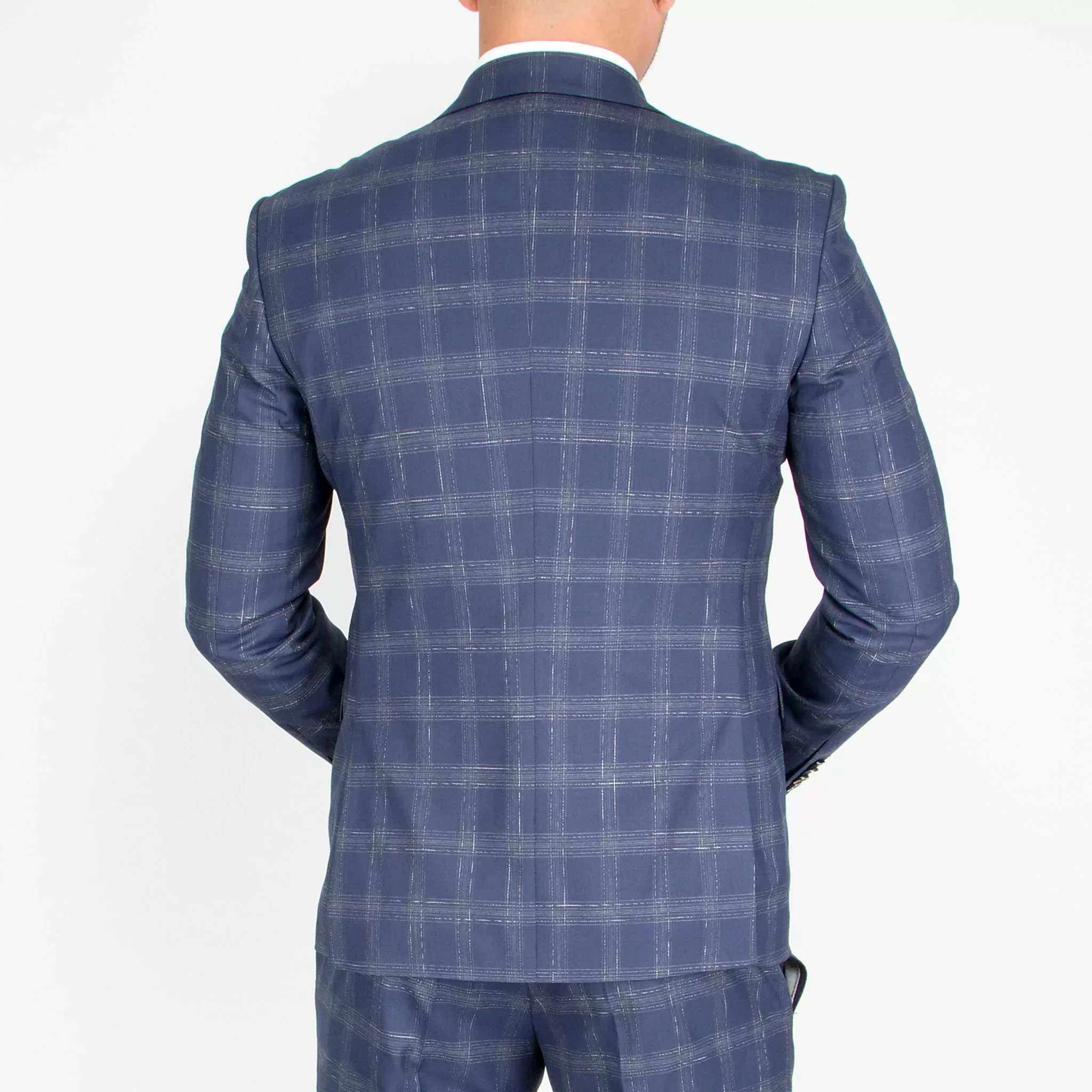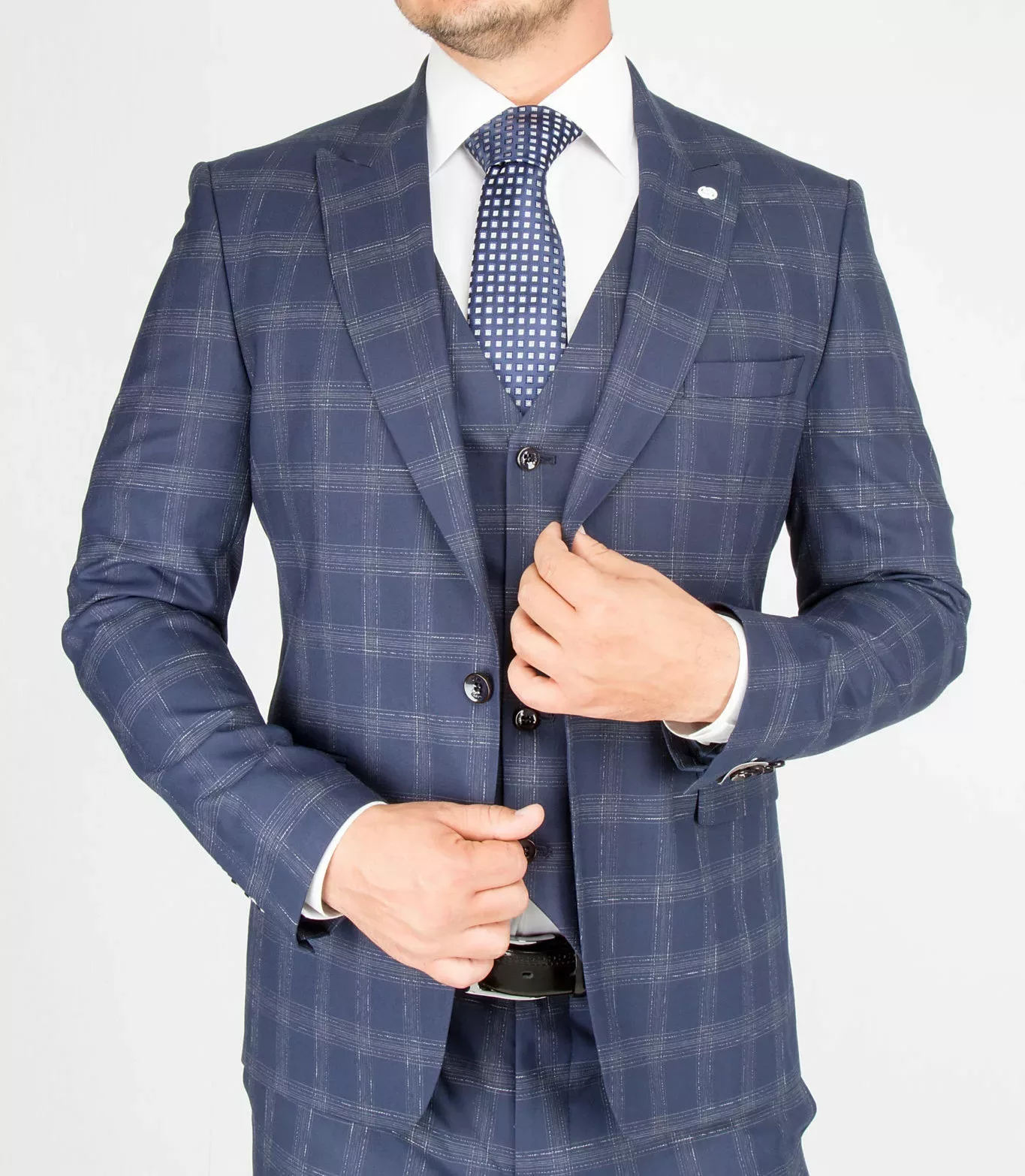 Костюм-тройка синего цвета в невыраженную серую клетку