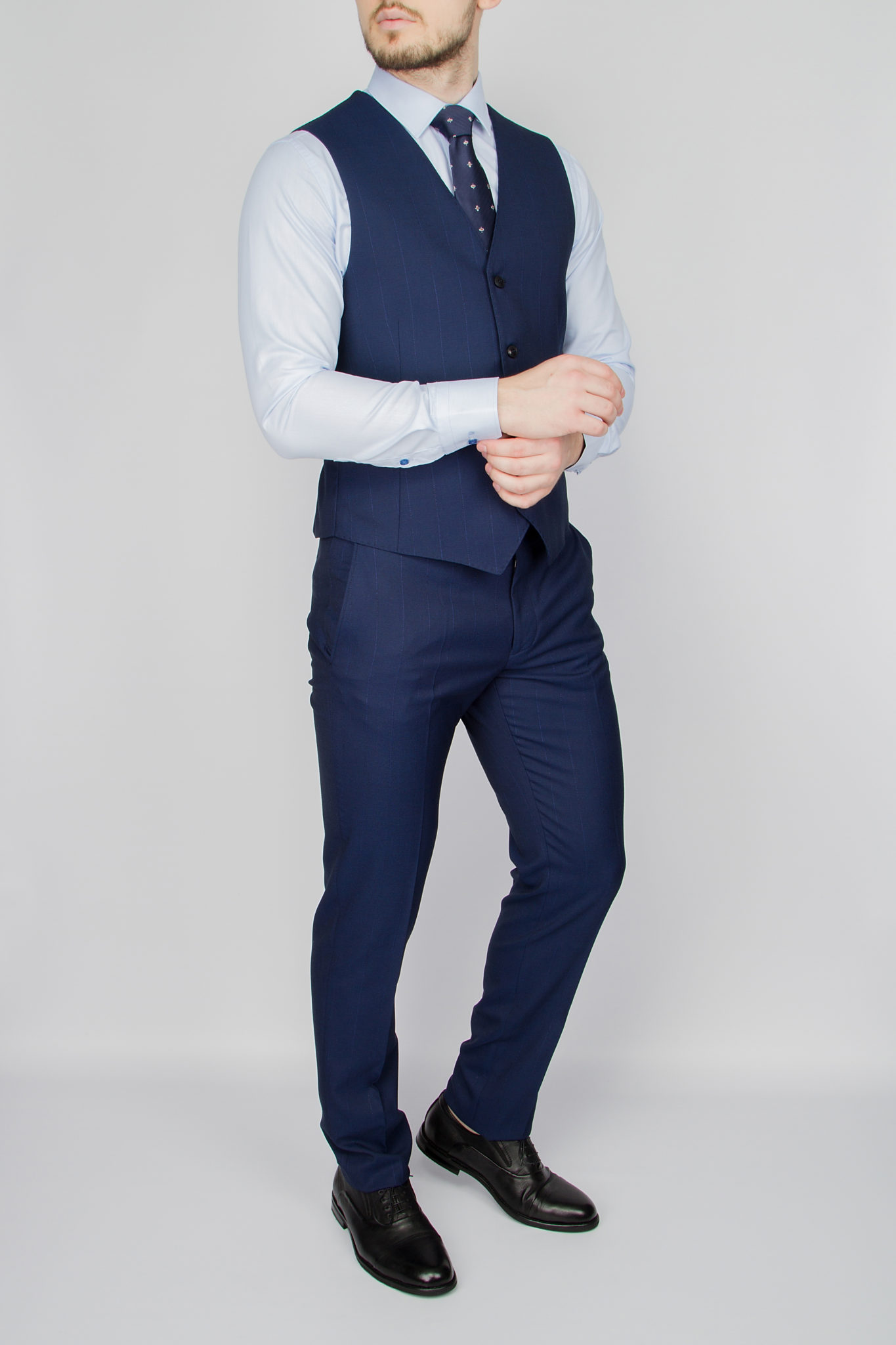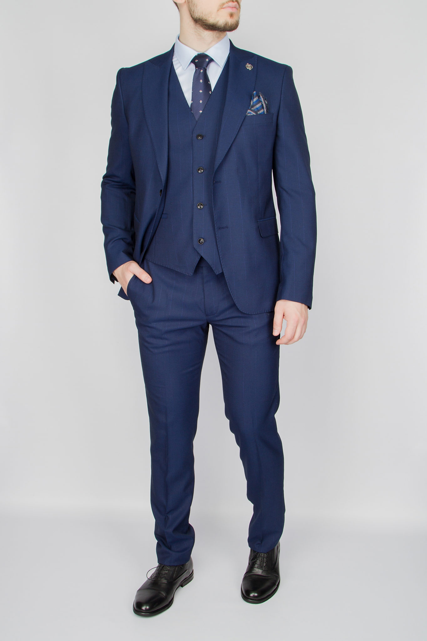 Костюм-тройка синего цвета в тонкую полосу