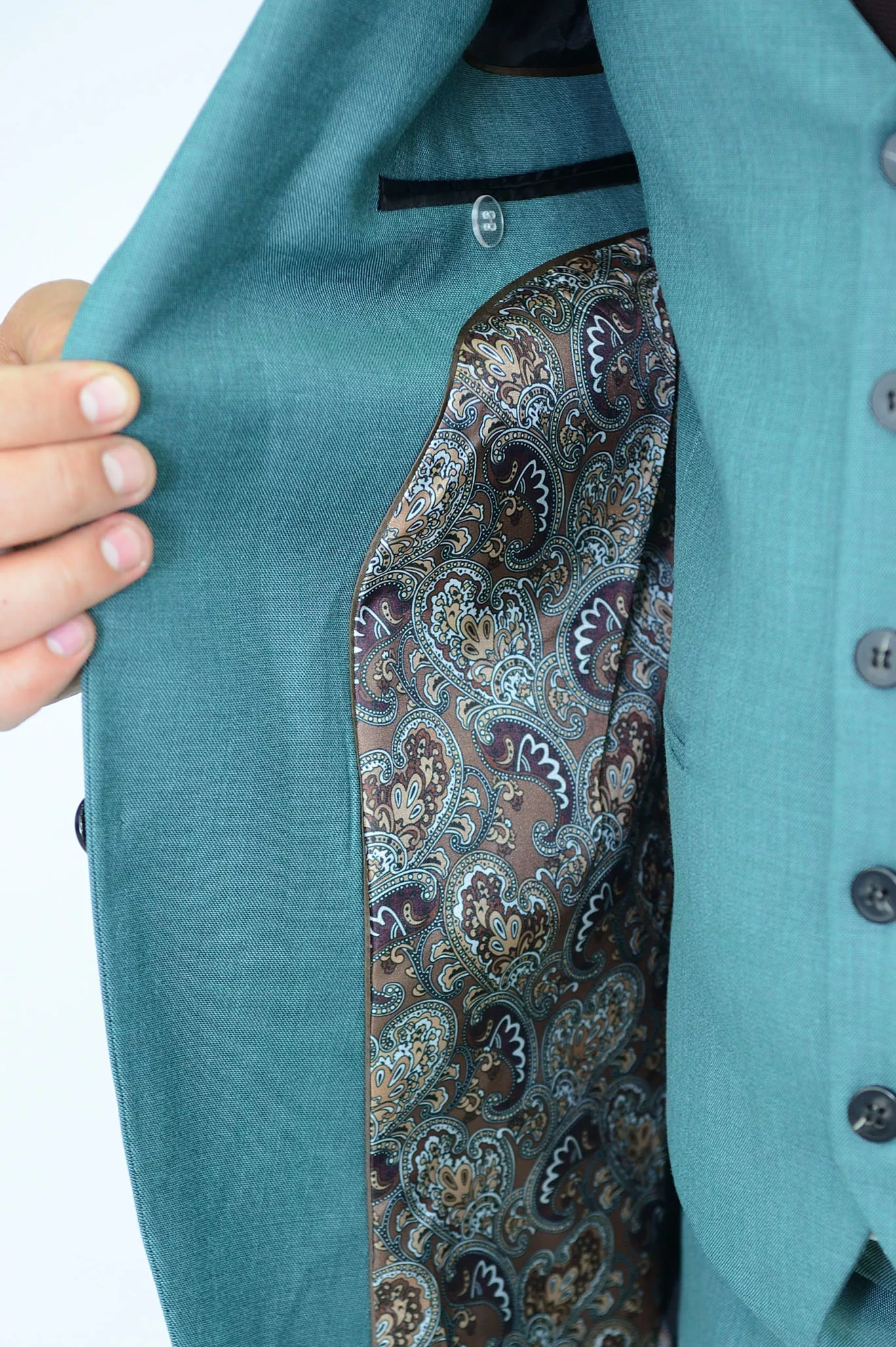 Костюм отшит в полуприталенной модели regular fit. Пиджак имеет застежку на две пуговицы, широкий лацкан воротника, нагрудный карман с листочкой комплектуемый платком, значок в петлице. Однобортный жилет с пуговицами в цвет пиджака, спина также из основной (не подкладочной) ткани. Брюки прямые,слегка приужены, имеют свободную длину. По вашей просьбе мы подгоним длину брюк под вашу ростовку. В костюме яркий, красивый подборт отлично гармонирующий с тканью верха. Костюм отшит из смесовой ткани высокого качества в составе 70% шерсти 30% вискозы, что позволяет долго сохранять презентабельный внешний вид и форму, ткань устойчива к заминанию.