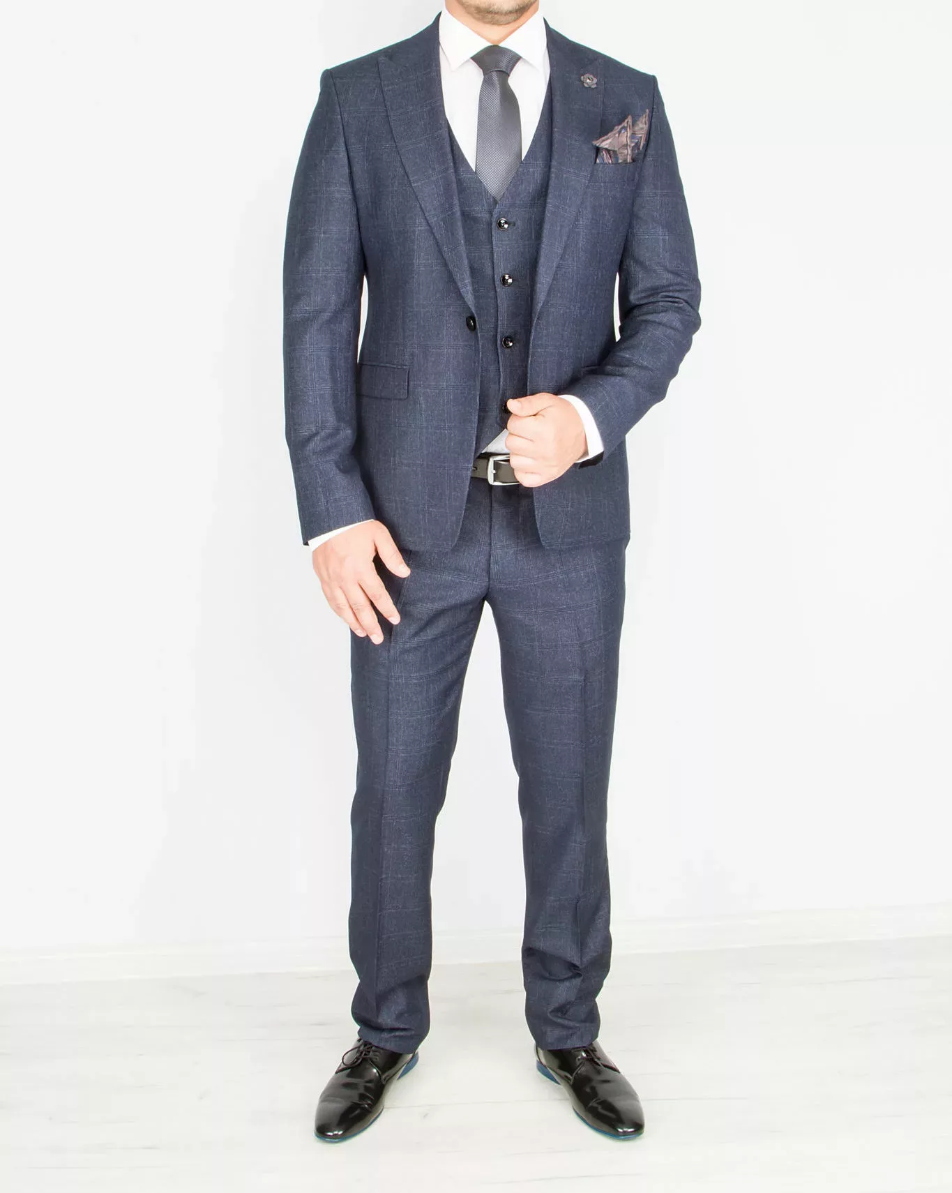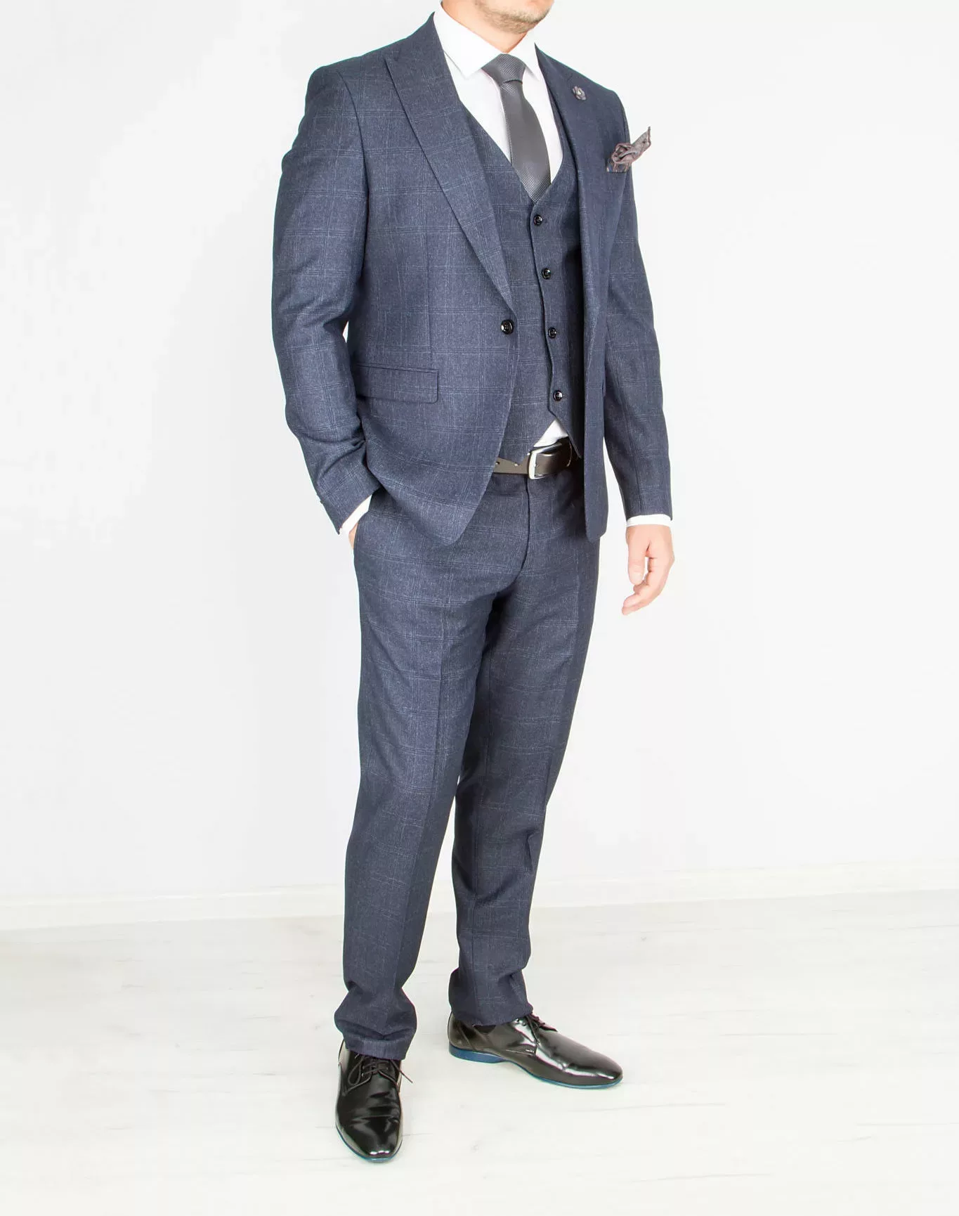 Костюм-тройка темно-серого цвета в неявную клетку