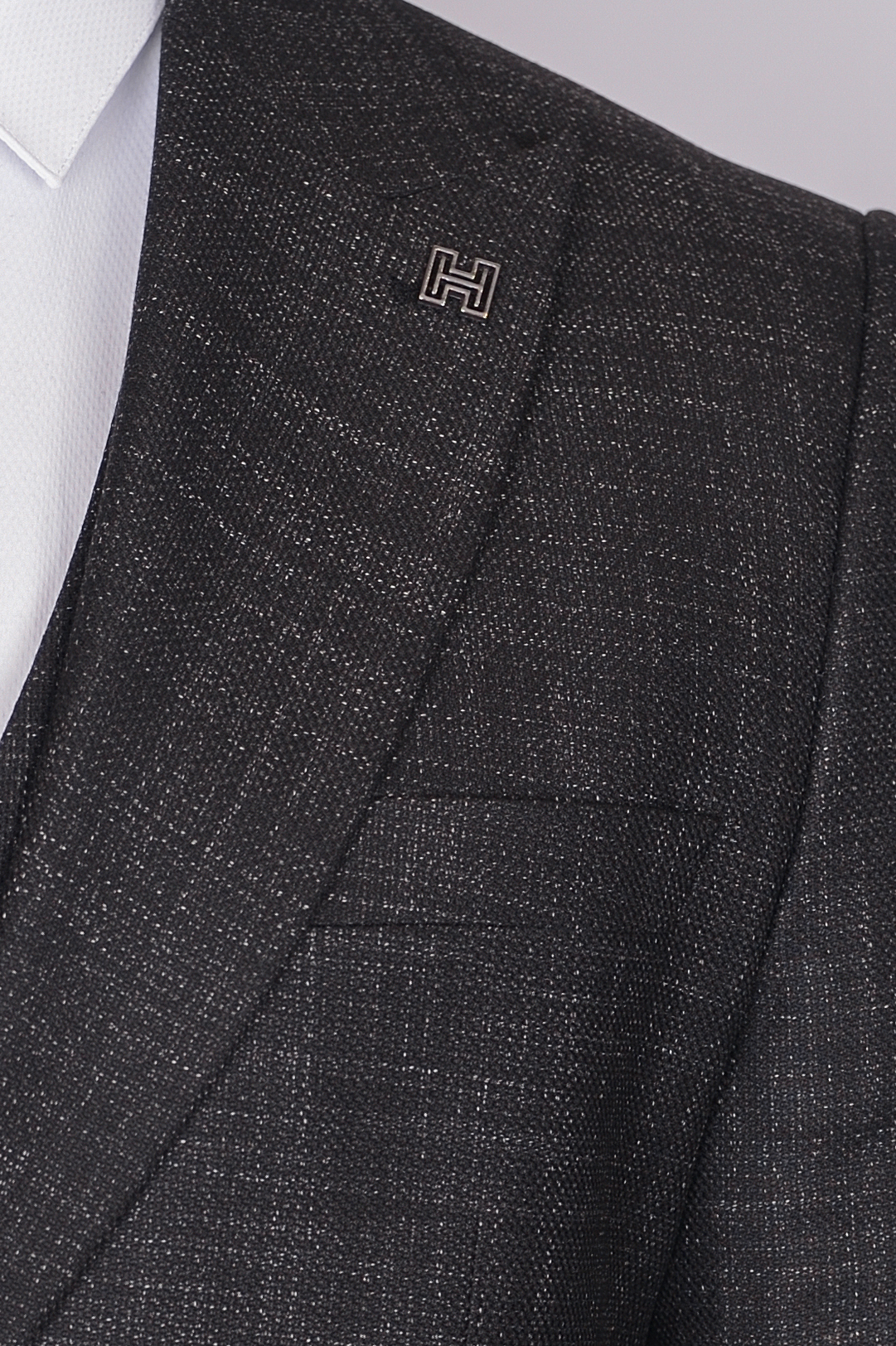 Костюм имеет замечательную посадку, отлично садится практически на любой тип фигуры. Данная модель отшита в темно-сером цвете, ткань имеет структурный рисунок, отлично подойдет для офиса и повседневной носки. Жилет костюма по спине также тканевый, что позволяет использовать его отдельно только с брюками.