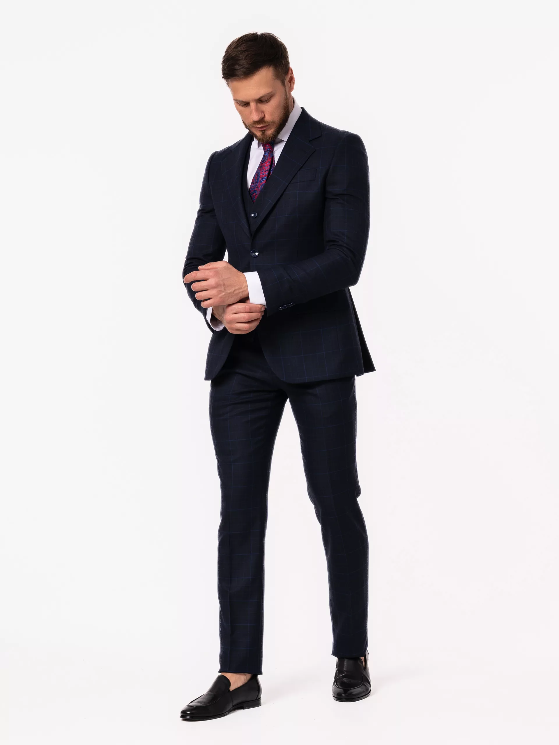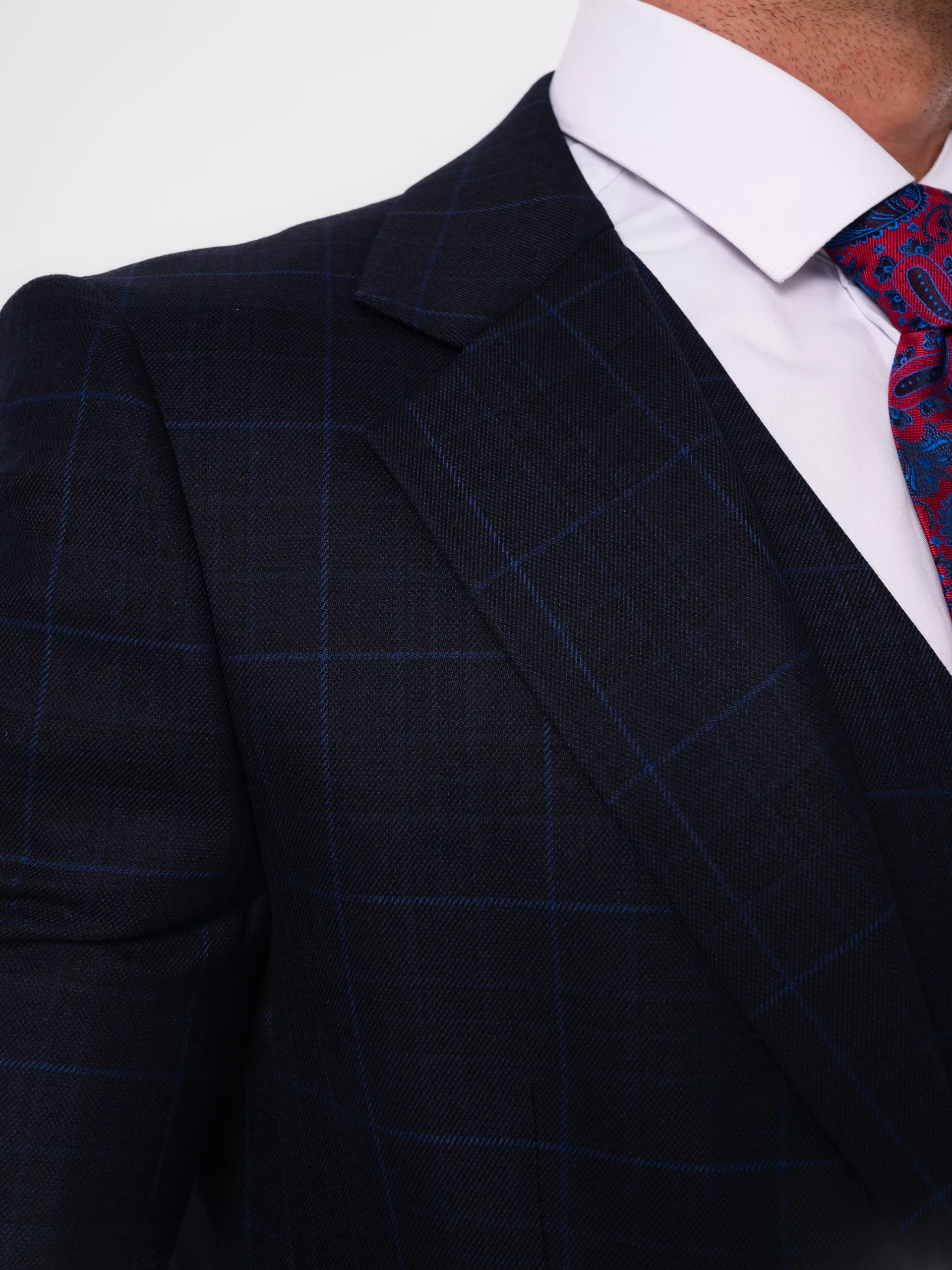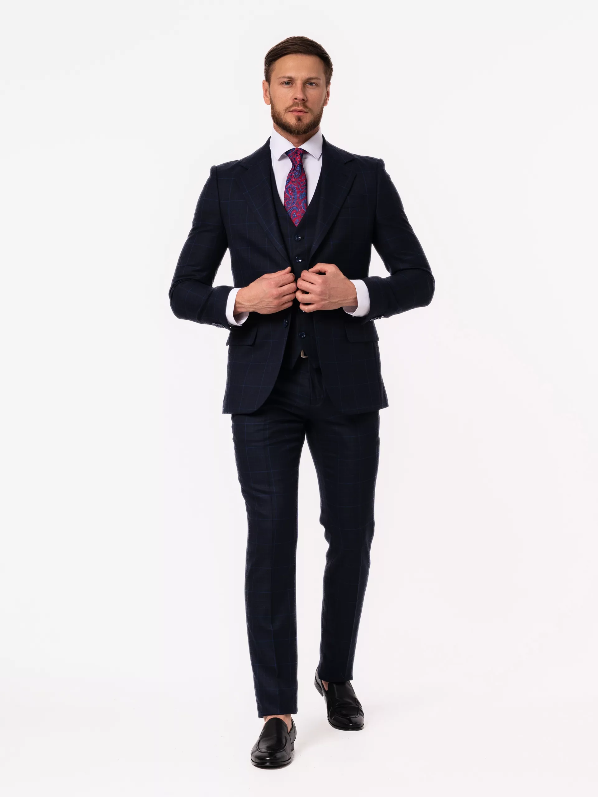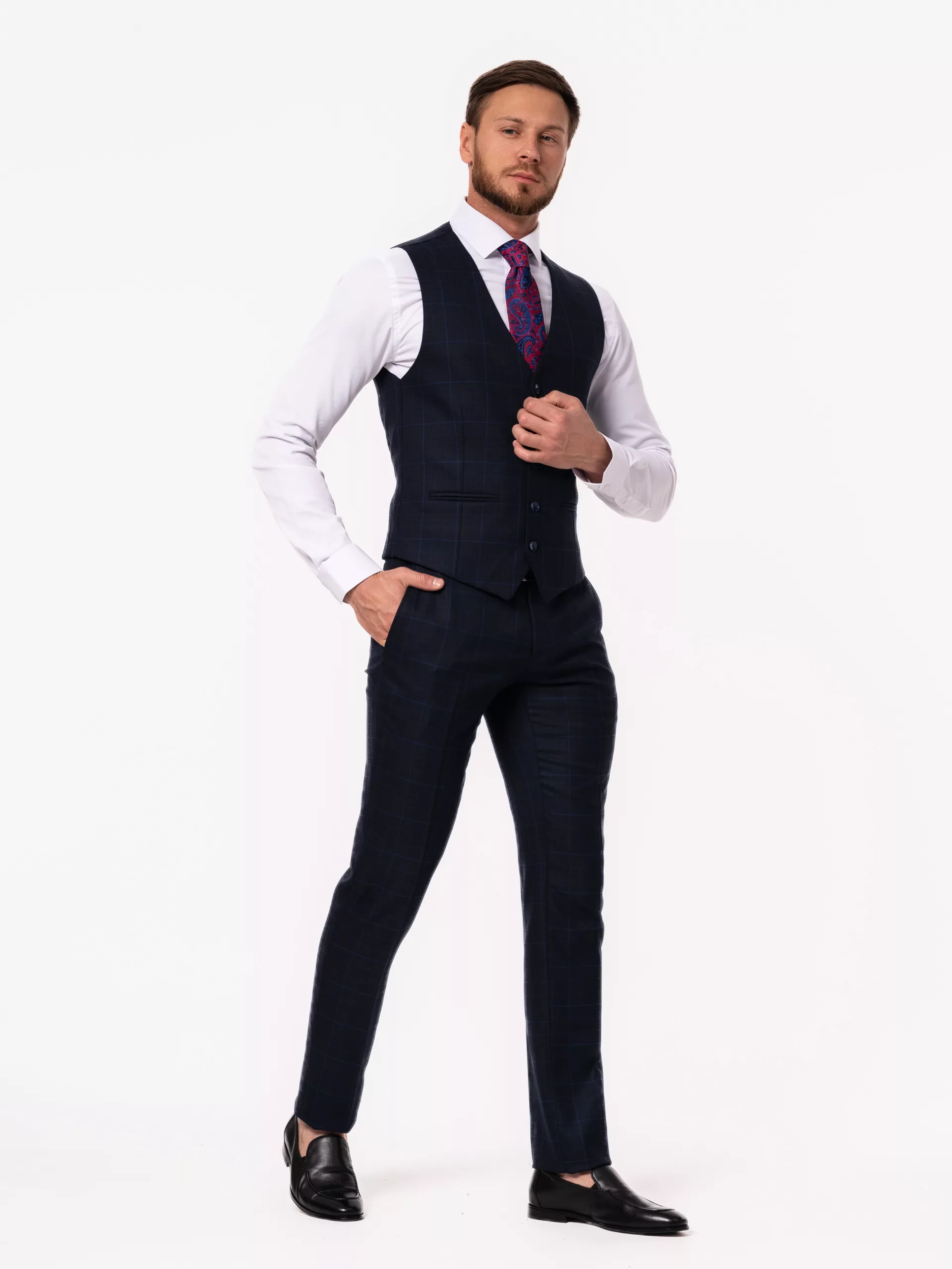 Костюм-тройка темно-синего цвета в клетку