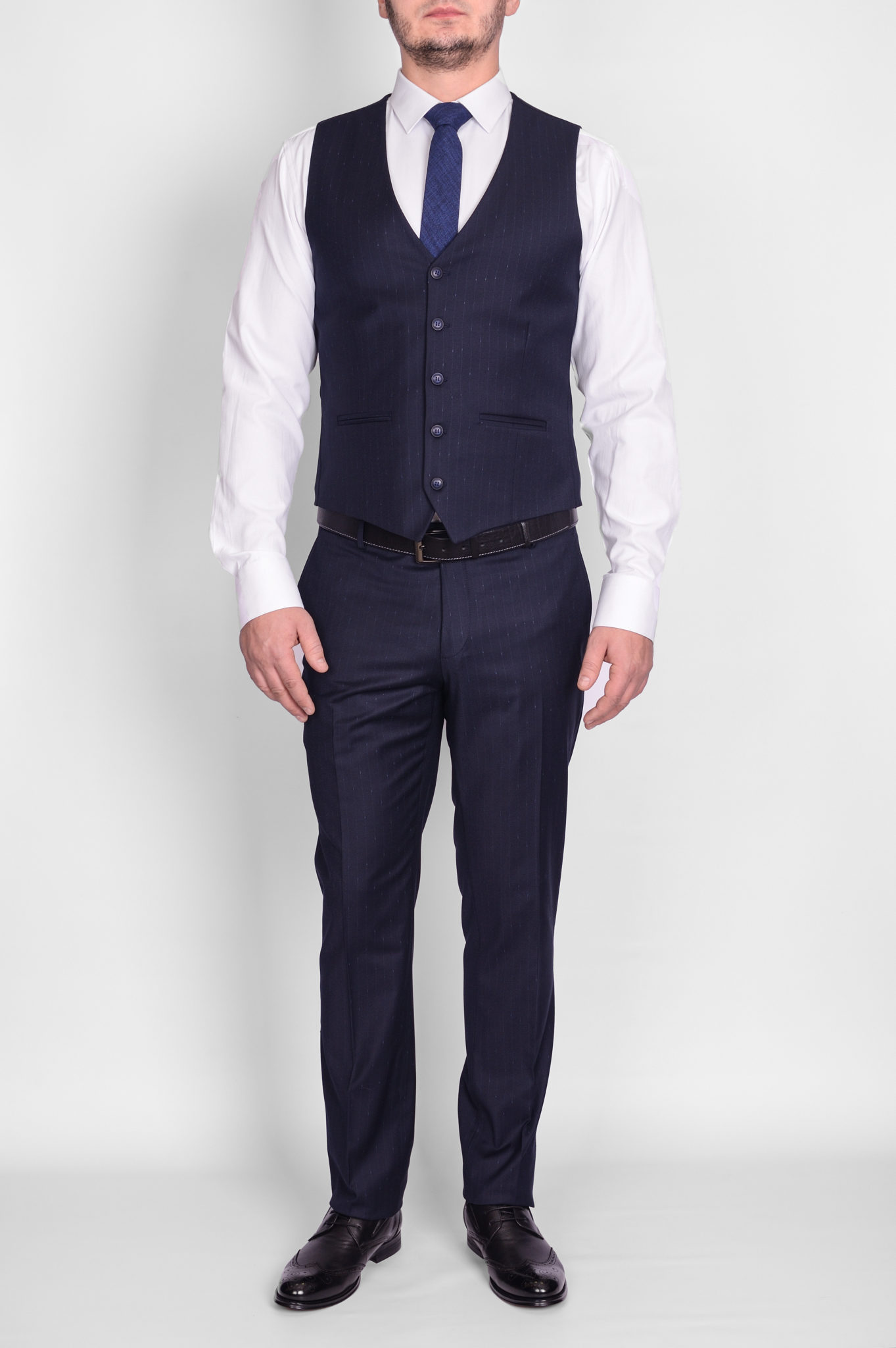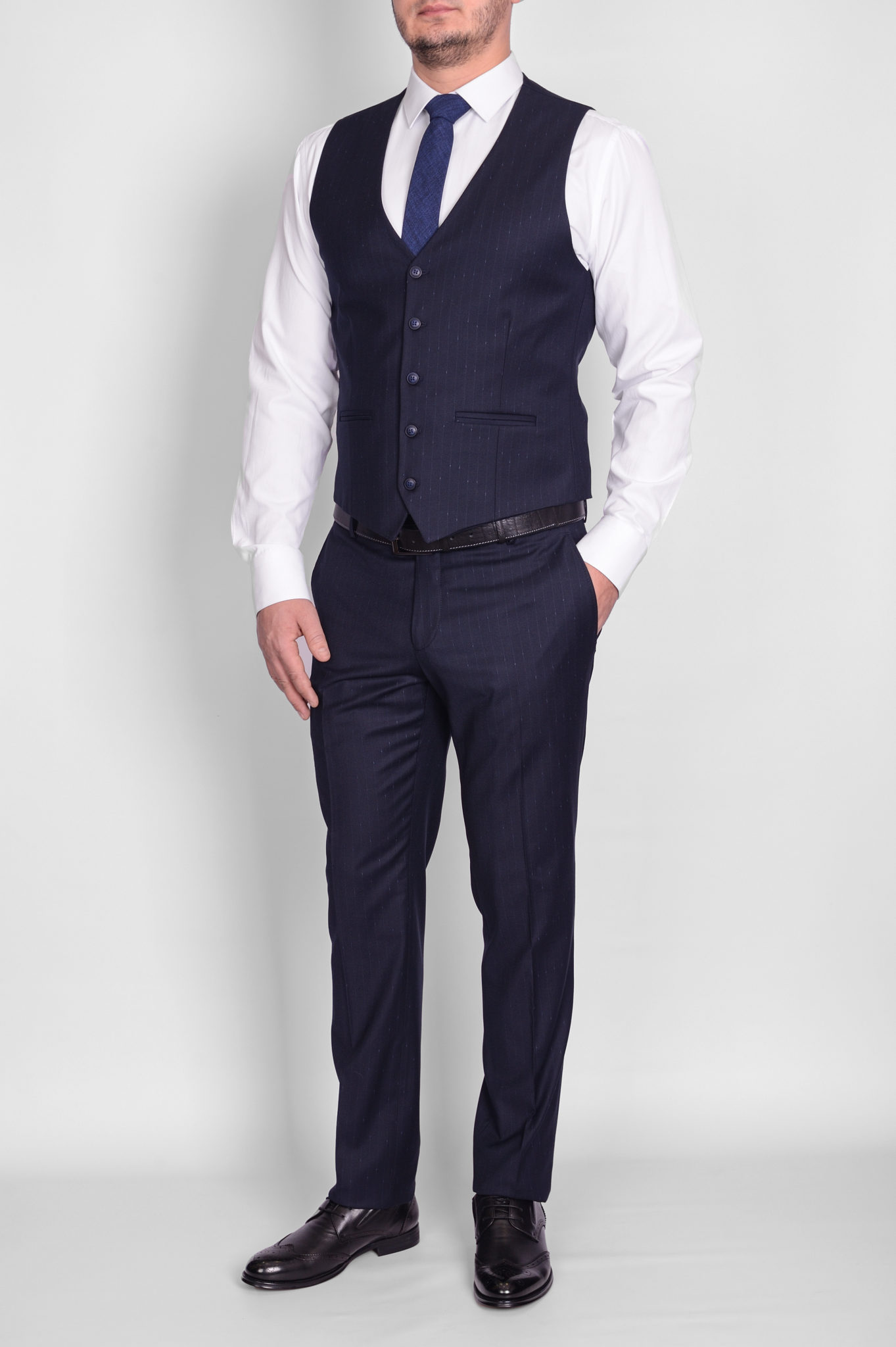 Костюм-тройка темно-синего цвета в полосу