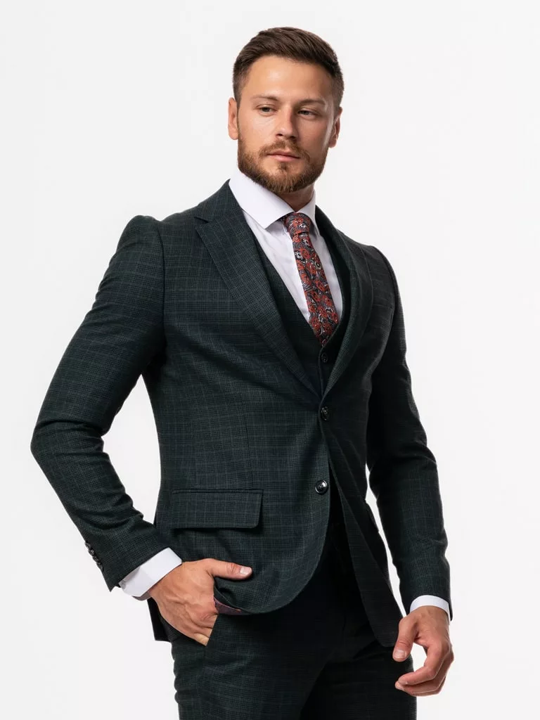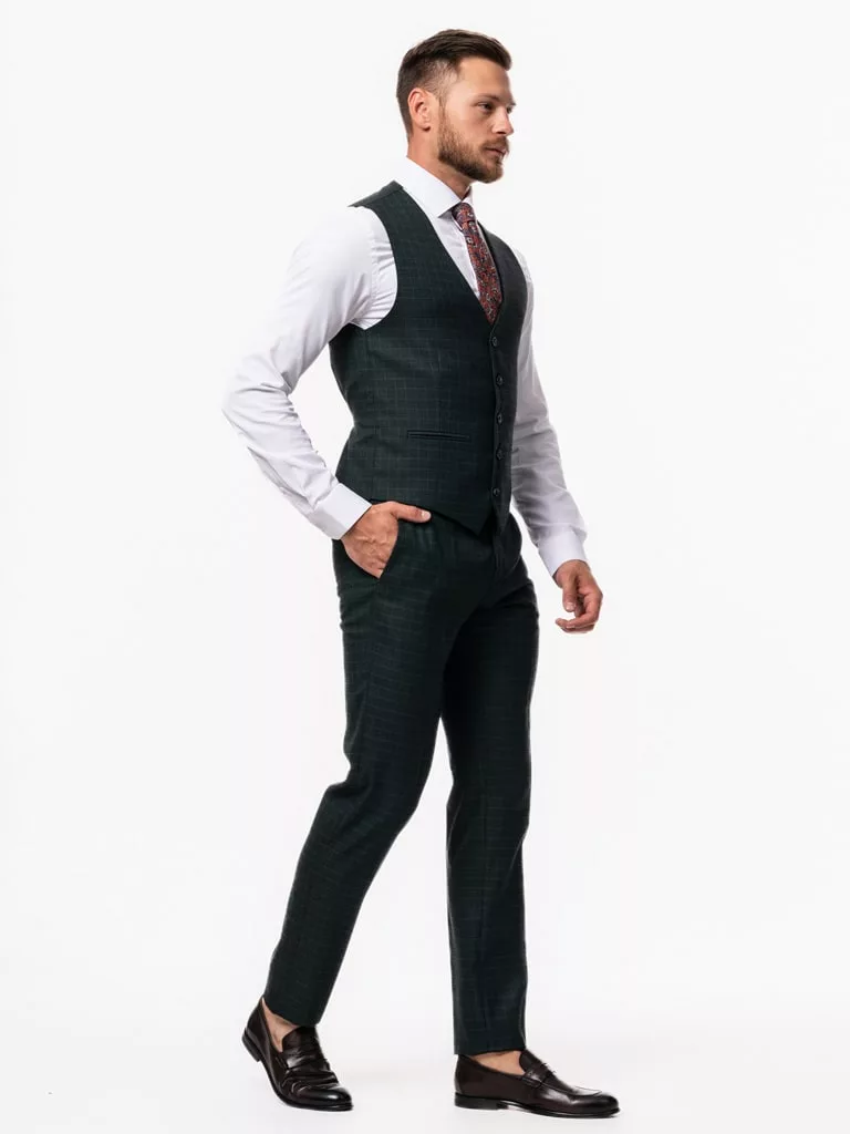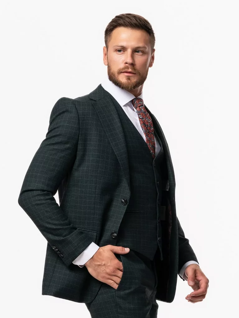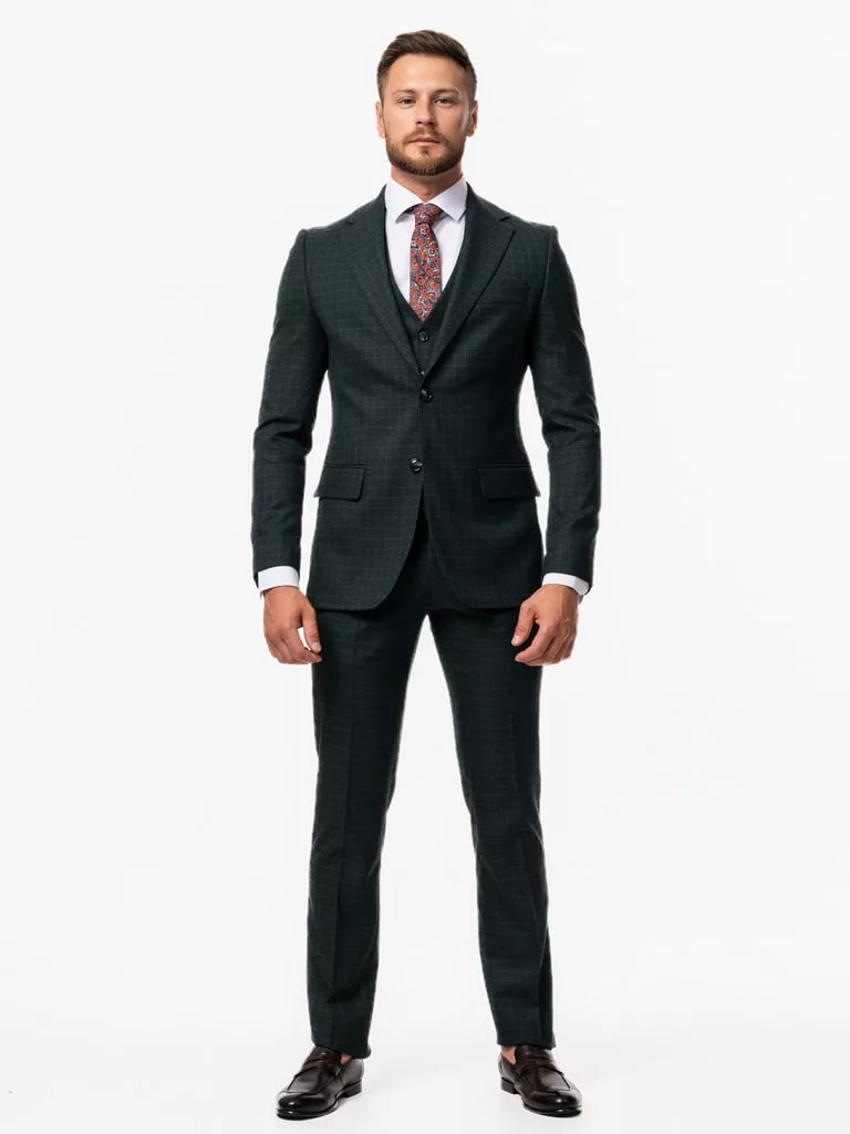 Костюм-тройка темно-зеленого цвета в мелкую клетку