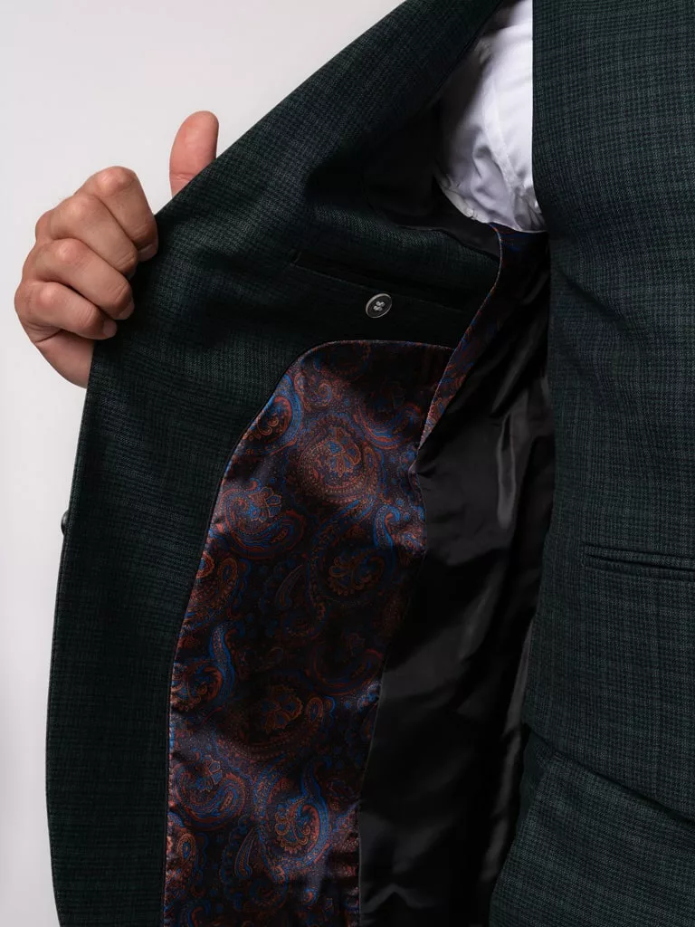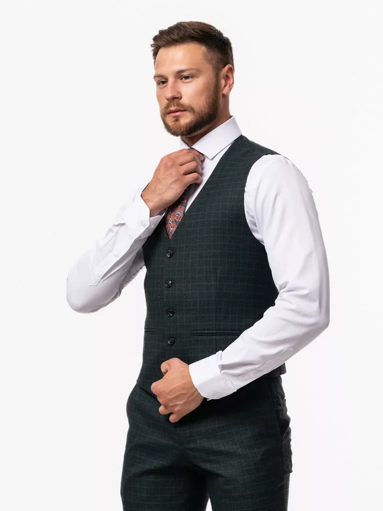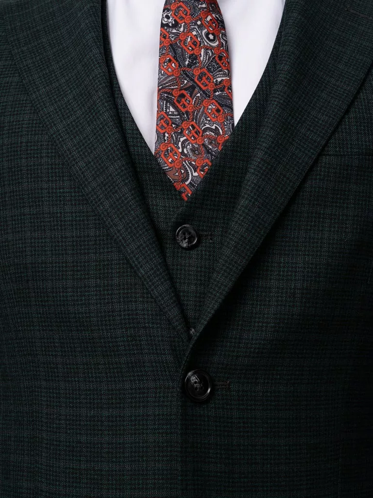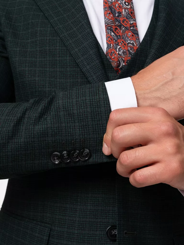Костюм-тройка темно-зеленого цвета в мелкую клетку
