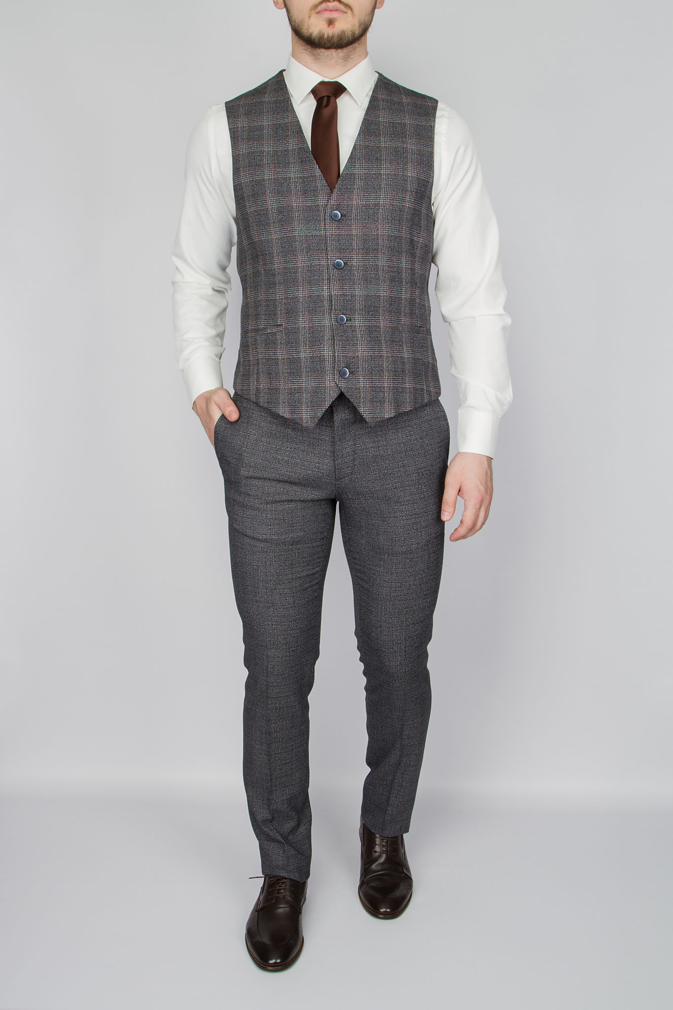 Костюм-тройка в клетку серый цвет