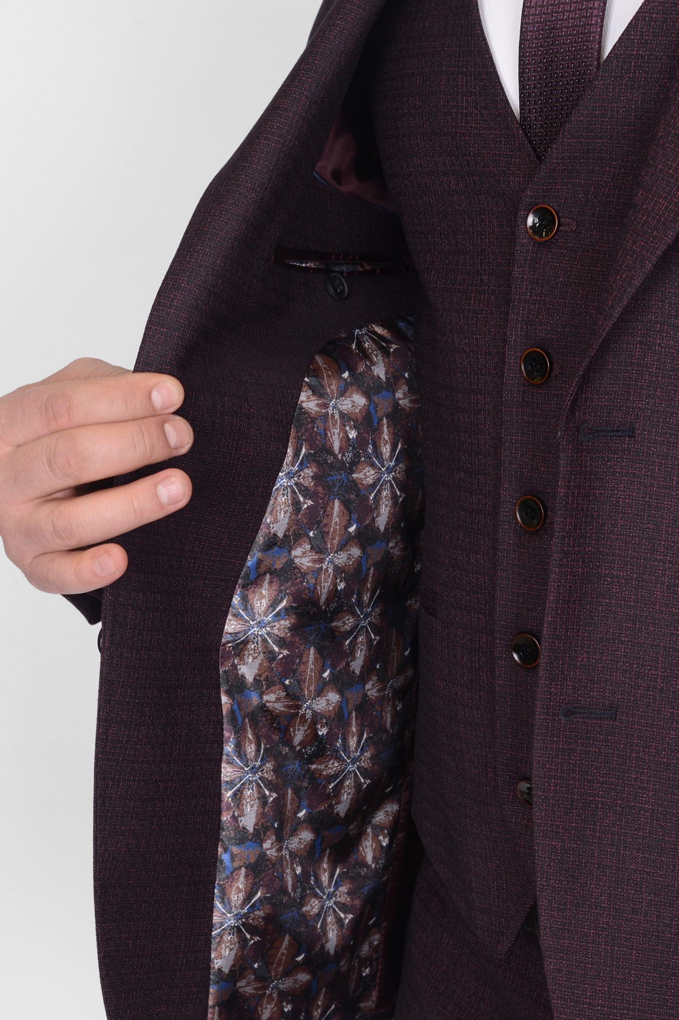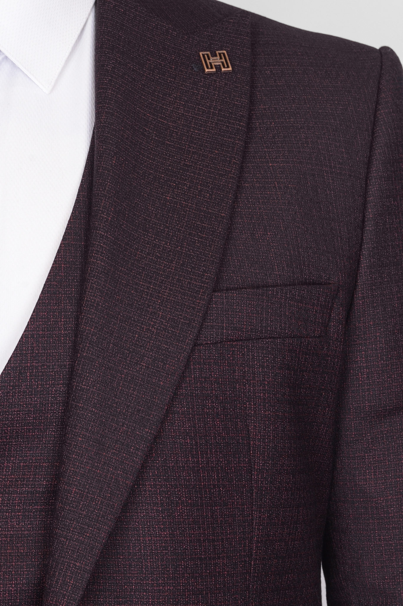 Костюм-тройка вишневого цвета с выработкой