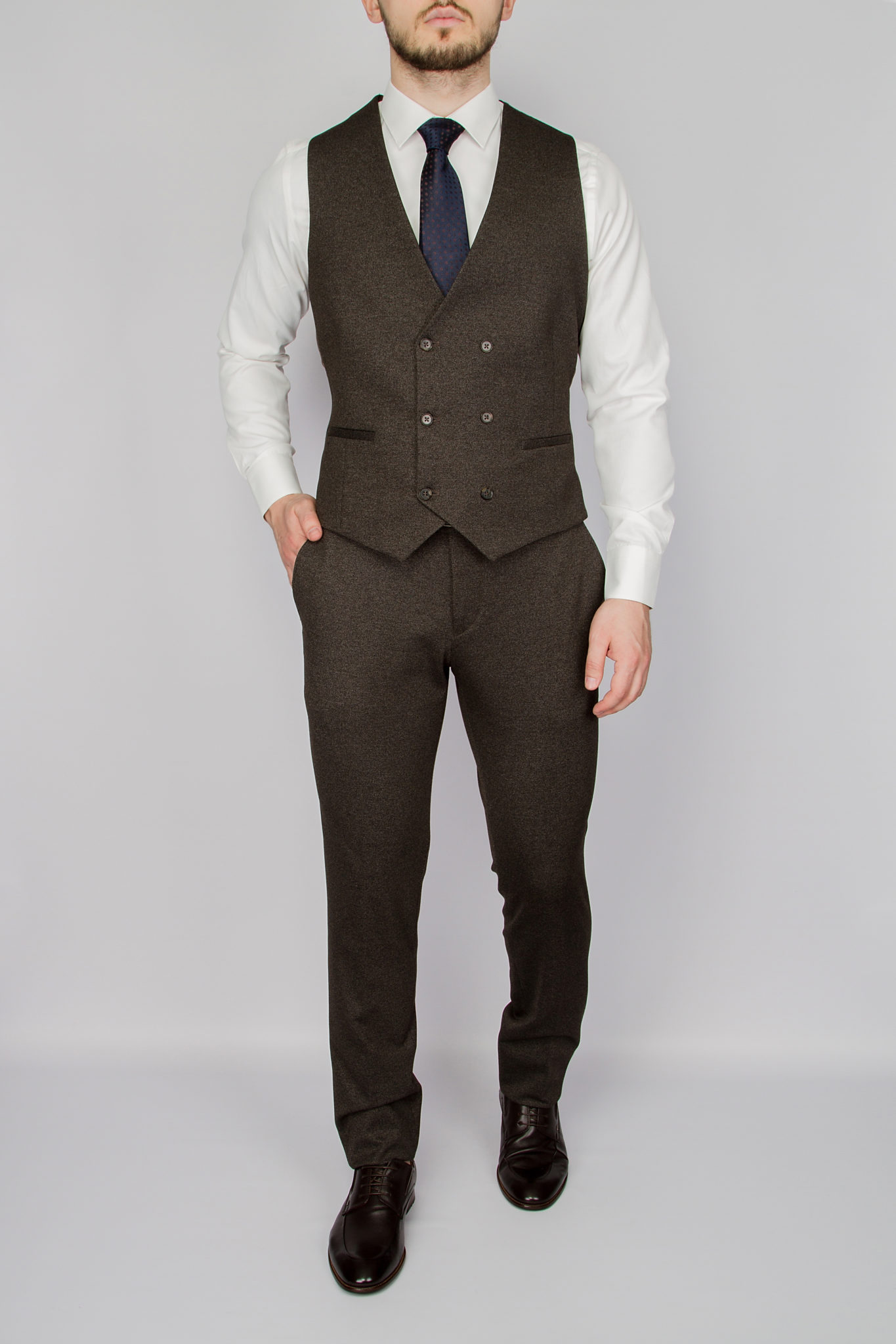 Костюм отшит в приталенной модели super-slim. Пиджак имеет застежку на одну пуговицу, узкий лацкан воротника, две шлицы сзади. Жилет двубортный с регулятором обьема. Брюки приуженного кроя, длинна свободная. По вашей просьбе мы подгоним брюки под вашу ростовку. Костюм отшит из смесовой ткани высокого качества в составе 65% шерсти, 30% вискозы и 5% эластан, что позволяет долго сохранять презентабельный внешний вид и форму, ткань устойчива к заминанию.